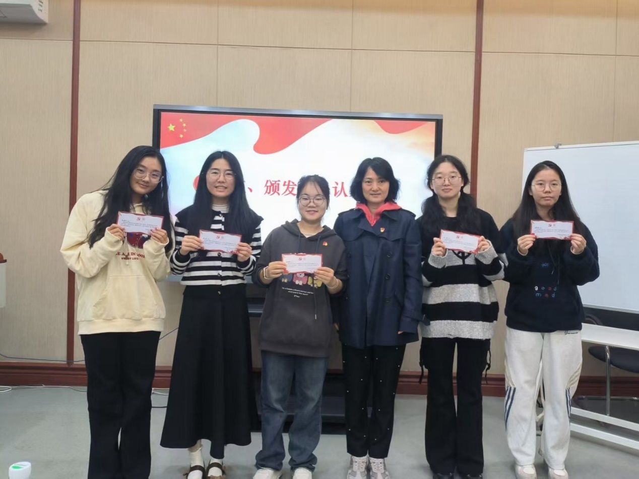 两个支部的具体情况,涉及日常管理、人员构成、三会一课的开展以及党员发展与培养等方面。之后,在“党员互认”环节,新老党员分别进行了自我介绍,大家在轻松的氛围中快速熟悉了彼此。随后,李小玲和翁思洁同志为新生党员颁发“党员认家卡”。