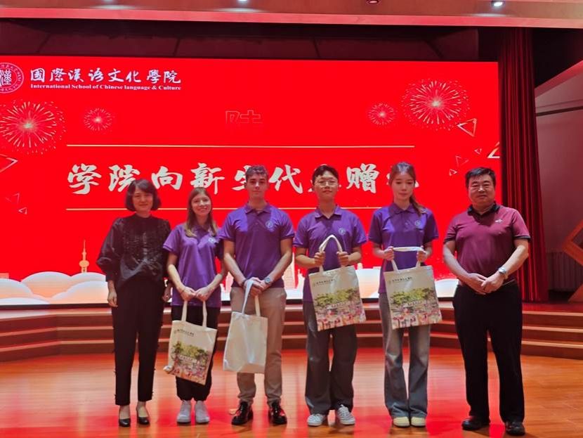 党委书记李小玲和院长石洛祥共同向中外新生代表赠送了精心准备的“迎新大礼包”。这份满载着成人影片