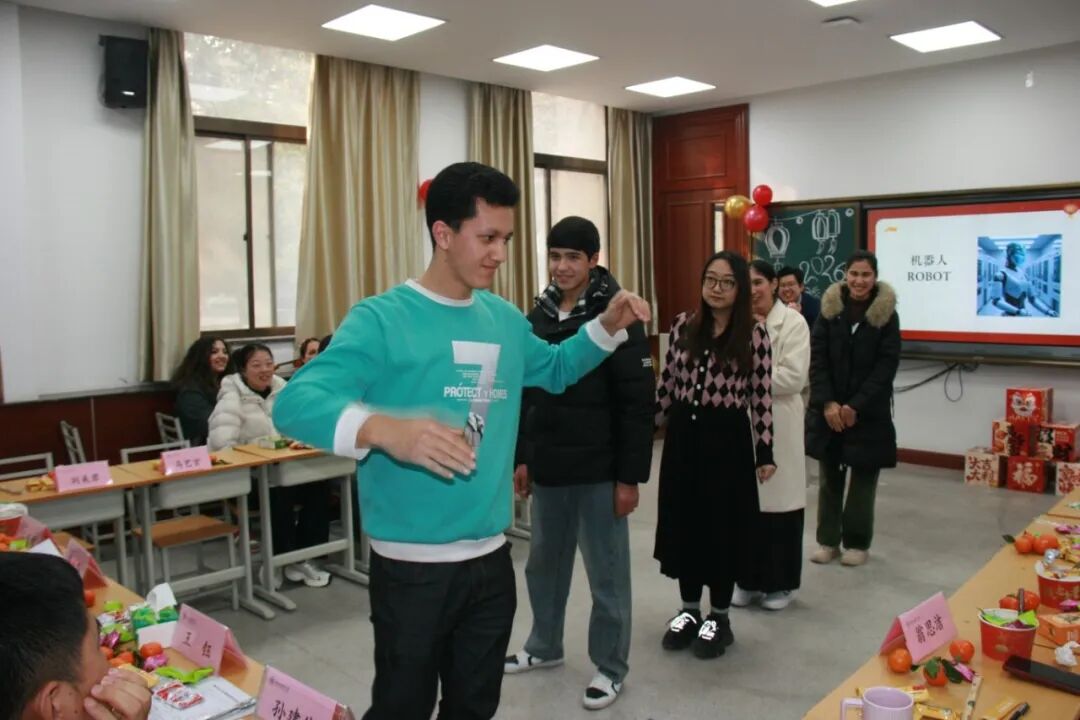 院长石洛祥、党总支书记李小玲、党总支副书记王钰、副院长贾泽林、副院长孙建伟与来自多个国家的留学生及中国学生代表欢聚一堂,共迎新春佳节。